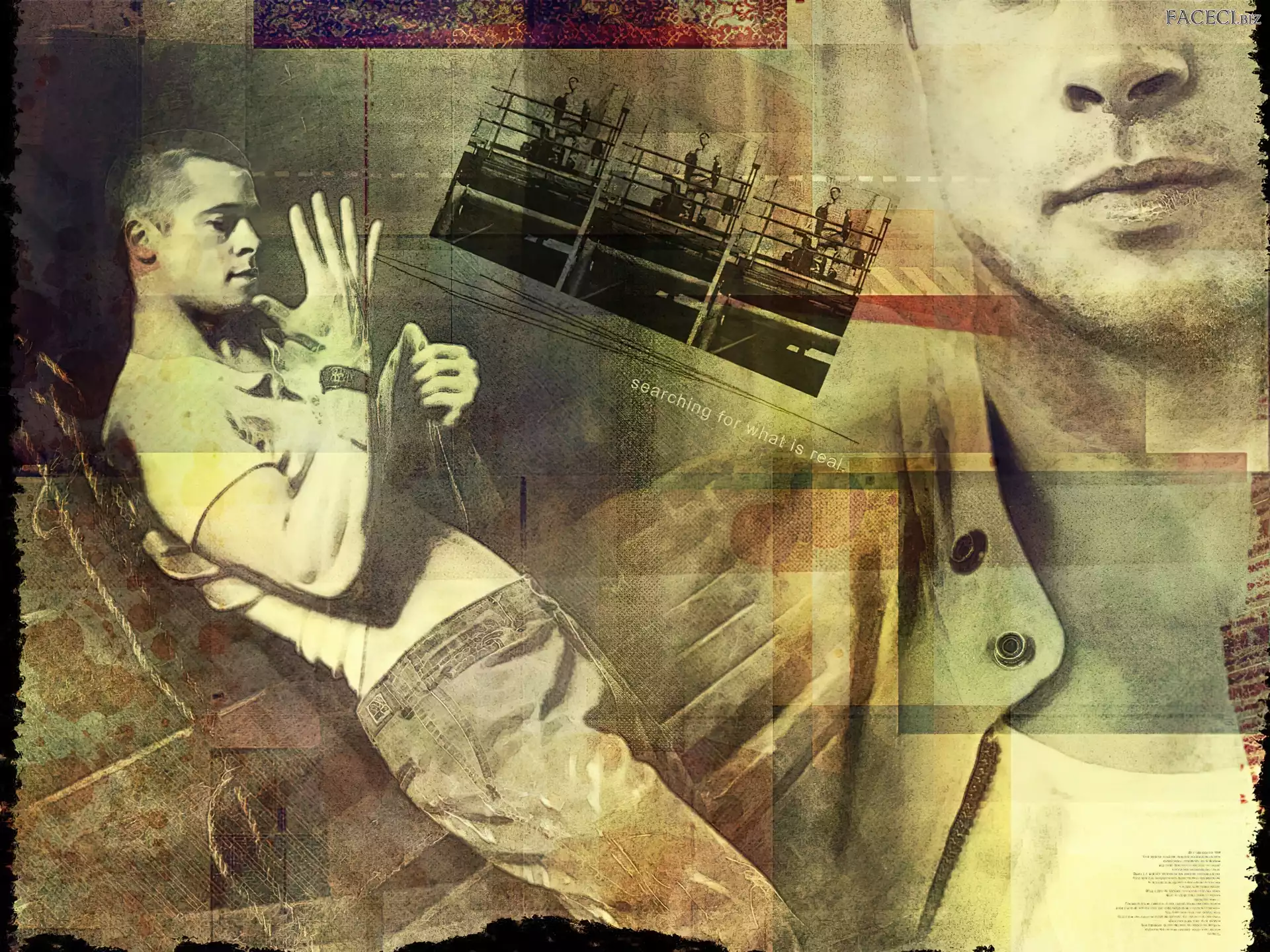 +, Brad Pitt, Tatuaż ranna, Zagubieni, Serial, Lost, Ian Somerhalder, Maggie Grace Mężczyzna, Papieros Okulary, Jean Reno, Twarz